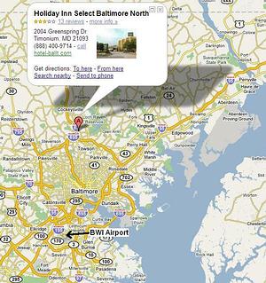 From BWI Airport: Take I-295 North to 695 West toward Towson. Take exit 24 onto I-83 North (signs indicate York, PA). Take the first exit, 16A, Timonium Road.