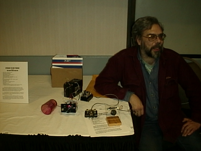 Wow, what a time and what a showing for Atlanticon 99 QRP Forum, the first ever large QRP gathering on the east coast! Over 125 QRPers gathered in Baltimore, MD on March 26 and 27 to hear presentations from honored and illustrious QRP authorities: KD1JV, N1PWU, K5FO, NN1G, NA5N, N2CX and W4RNL, while also sharing in the camaraderie and fun of mingling with QRP friends across the country. Another highlight of Atlanticon 99 was the Homebrew Construction Contest held in the hospitality suite on Saturday ... what an array for fine craftsmanship!