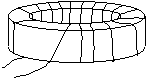 Uncoil the supplied red magnet wire, cut off a 24" length and begin winding the wire around the T37-2 toroid core (one side of this little "donut" is red.) Count one turn each time the wire is passed through the core. You will be putting a total of 35 turns around the toroid core in this manner. Refer to the photo and figure below for guidance. I normally hold the toroid core in my left hand and weave the length of the magnet wire through the core in a sewing-like manner, pulling each loop tight against the body of the core and proceeding around the core being sure not to overlap any of the windings.