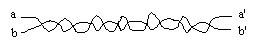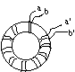NOTE: If you dont have two colors of magnet wires when making this transformer, but instead use two wires of the same color, it's a bit hard to know which ends to connect together for the center tap. You should use an ohmmeter to determine the proper ends. Remember to strip off some of the insulation on the ends before using your ohmmeter! Once you identify the proper ends of the wires a-a and b-b, you can then twist wires a' and b together to form the center tap.