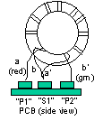 You next need to form the "center tap" of the transformer by twisting together the a and b ends. These ends are easy to identify, using the red wire from the start of the toroid winding and the green wire from the end of the winding. Or vice versa it doesnt matter whether you use the a-b or the a-b wires as the center tap. The transformer is symmetrical.
