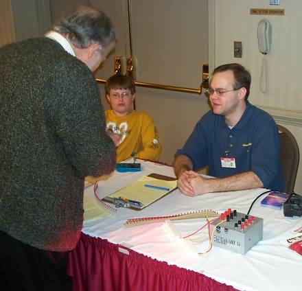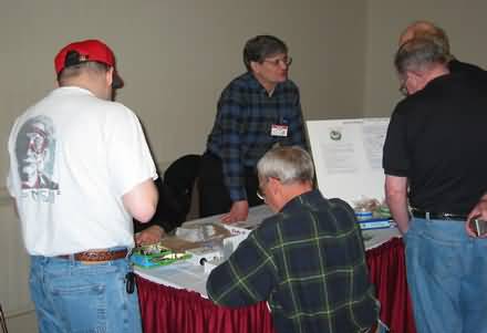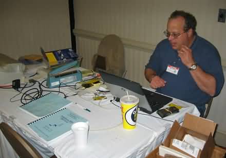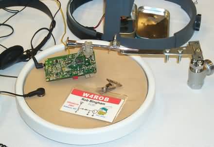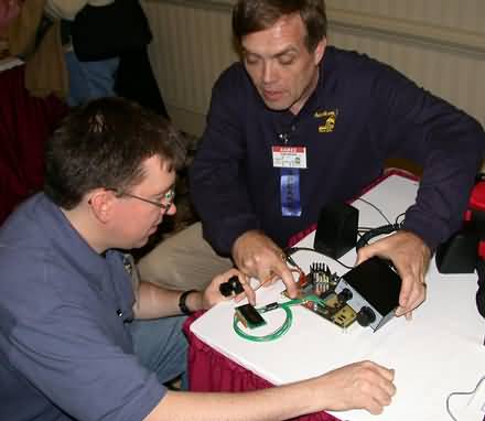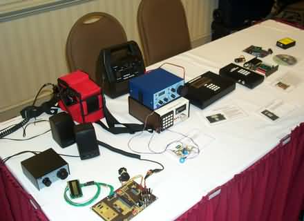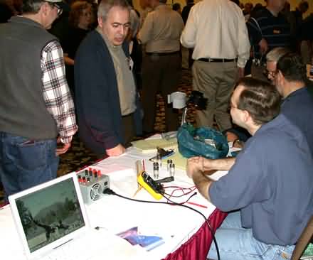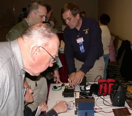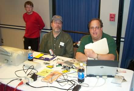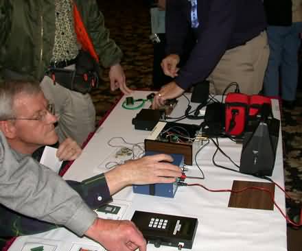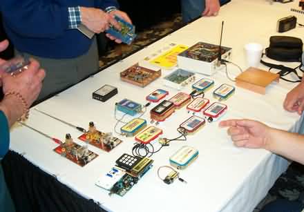 the kits table, people manning the Badger Smart badge / PSK31 Audio Beacon
