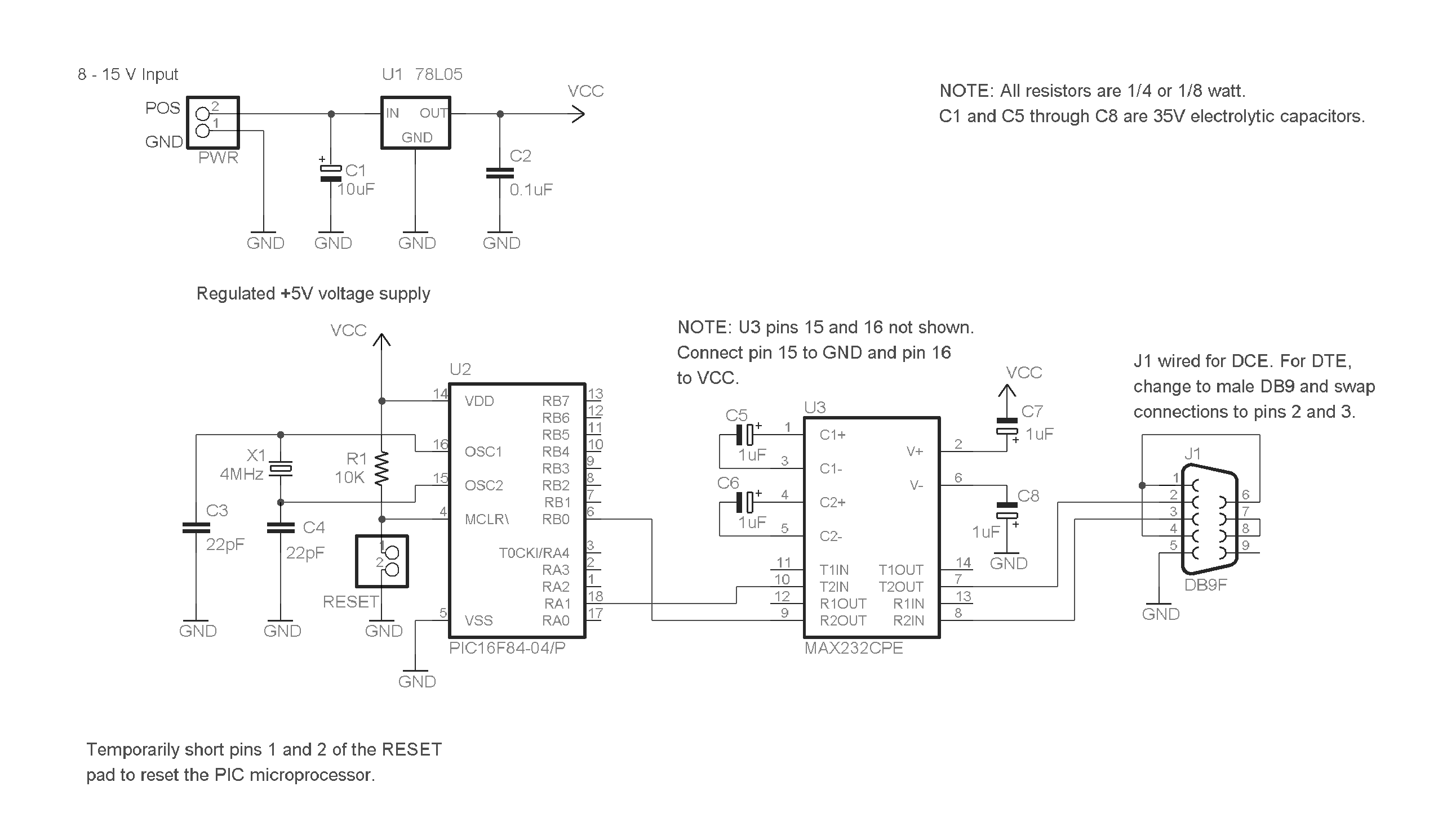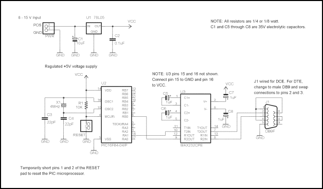 RS-232 logic. Our PIC chip uses TTL logic levels, but it must communicate