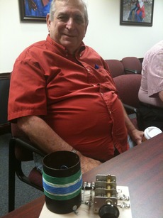 W2IOL mentioned, for the sake of George N2APB, that the "Front Porch Bluegrass Festival & Pig Roast" will be held at Gazebo Park in Chester, NJ on Saturday, July 10. Details: http://culturemob.com/chester-nj For Joe N2CX, he brought one of his $5 Bluetooth headsets he says "work great!" that he purchased from Electronic Expo. Of course, he brought his van, with its back filled with freebies, including some decent UPS units that only require new batteries. He also "raffled" off a 30 meter transmitter/receiver combo (See photos below) that went to John KB3OXW. He also mentioned he is interested in the "New England Code Talker voice powered CW transmitter" designed by Mike Rainey, AA1TJ, Details at: http://www.nt7s.com/blog/2009/11/push-it-to-the-limit/