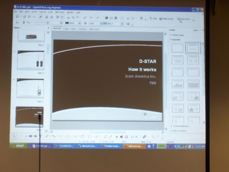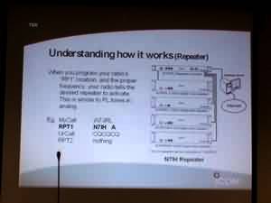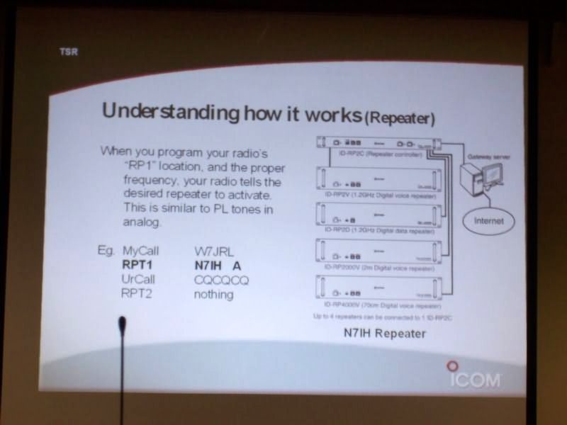 Mark Phillips, G7LTT gave us a nice overview of another topic that he's become interested in: D-STAR. He and several others in the northern NJ area have installed a D-STAR-capable repeater and some radios that work across this evolving standard for digital voice over radio. As Mark described it, there are not too many feature benefits of the technology and appears to be driven by Icom as part of the need in Japan to meet certain regulations, but it appears to be an interesting technique to experiment with as an outgrowth of the older packet radio days. He doesn't predict it really gaining traction but will keep us posted on its continued progress here in the US.