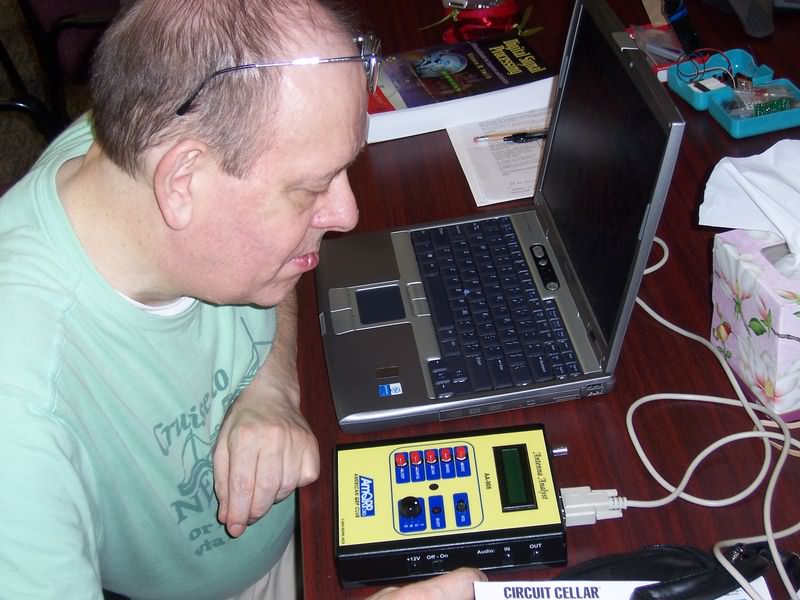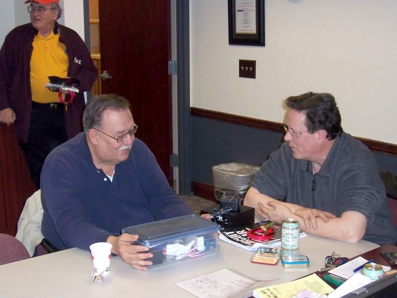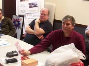 George Heron, N2APB kicked off the meeting with a show 'n tell of the "Rookey" Atlanticon Kit, now in final form and built up in an Altoids tin. I think everyone agreed that it's a nice looking kit, fairly easy to put together and calibrate, and that it should be fun to use during the competition on Saturday night there at Atlanticon, as well as afterwards around the shack using the additional information and "encoder" parts that we'll have for people there at the weekend. We have the Atlanticon kits all prepared now and they will start shipping next week to all those who pre-registered for Atlanticon, as well as to all those new registrations coming in now. (The Rookey Kit will be generally sold to others after Atlanticon.)