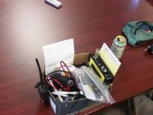 Joe Everhart, N2CX described how he dissected one of the small stereo speaker assemblies that he demo'd at the last meeting. He found that it contained a couple of 1/2W mini speakers and small stereo amplifier IC that runs on the 3V. He says that we'll likely see some project Quickie from him on this chip in the future. Also being a Dollar Store aficionado, Joe showed us some interesting plastic holders of four AA cells that could contain NiMH cells to serve as a 4.8V supply for his bench projects (as well as for the Rookey kit ... hint hint).