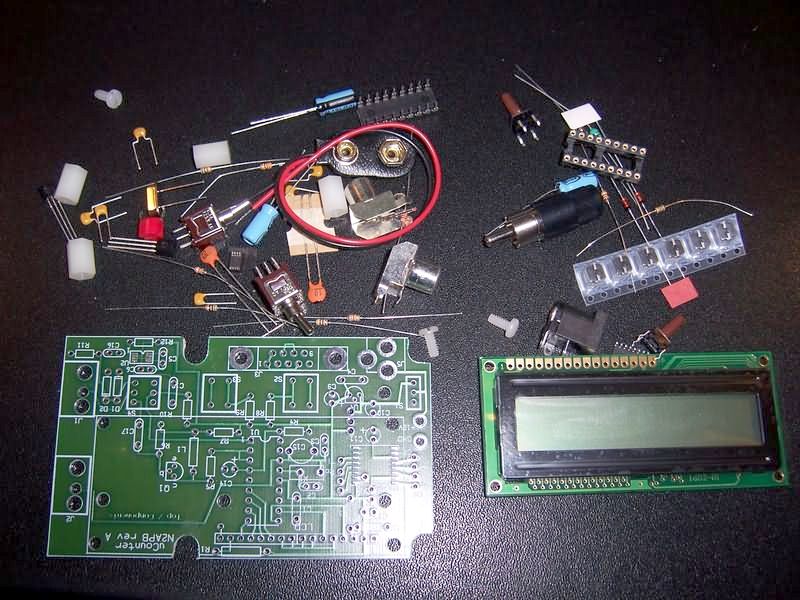 Mark Phillips also handed out the club kit that we've been working on for a while: the 50 MHz frequency counter. This is a project that he's been spearheading, along with Joe and George, such that each club member attending our meetings gets this kit free as part of an ongoing, greater-vision project that we are working toward (highly-accurate, GPS-driven or WWVB-driven frequency standard and absolute clock). So all those in attendance got this kit of pcb, parts, programmed PIC and LCD ... we expect to see some progress on this when we next get together. The doc and further details are available on Mark's website at http://www.g7ltt.com/njqrp/.