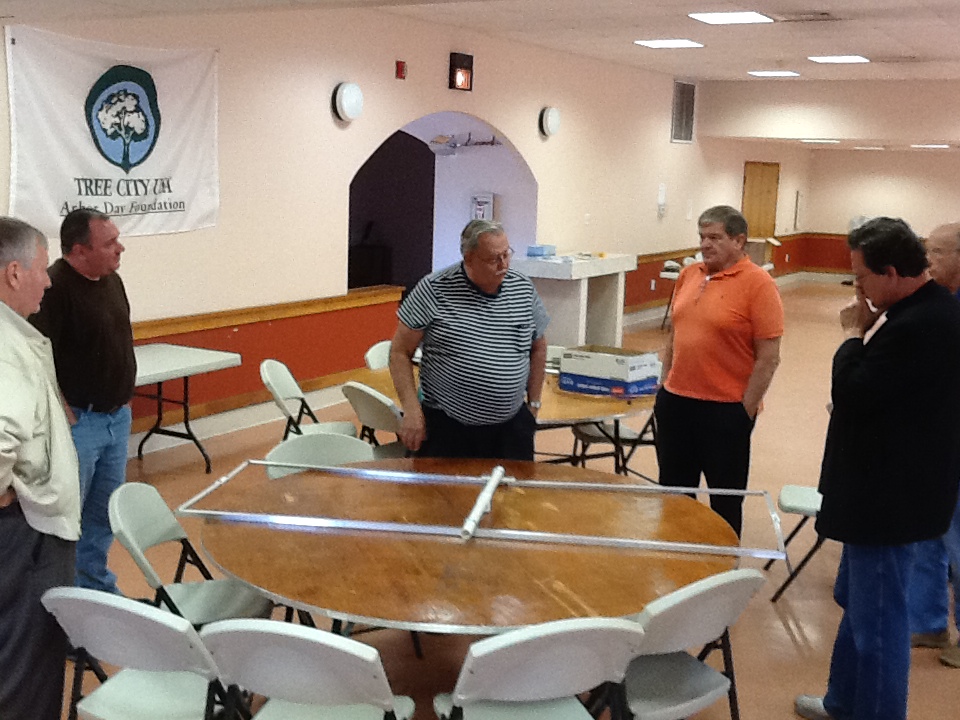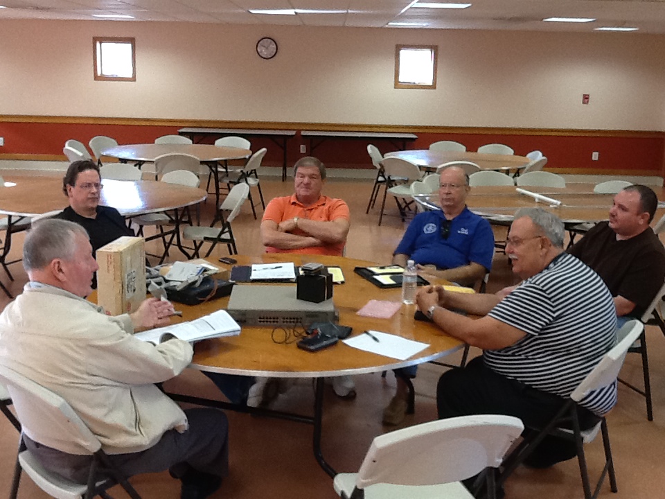 Clockwise from the left: Ray K2ULR, Joe KC2VGL, Jim K2SZ, Carl W2PTZ, Frank N2PUU, Joe N2CX, and your humble picture-taker George N2APB (who is rarely in any of the photos!).