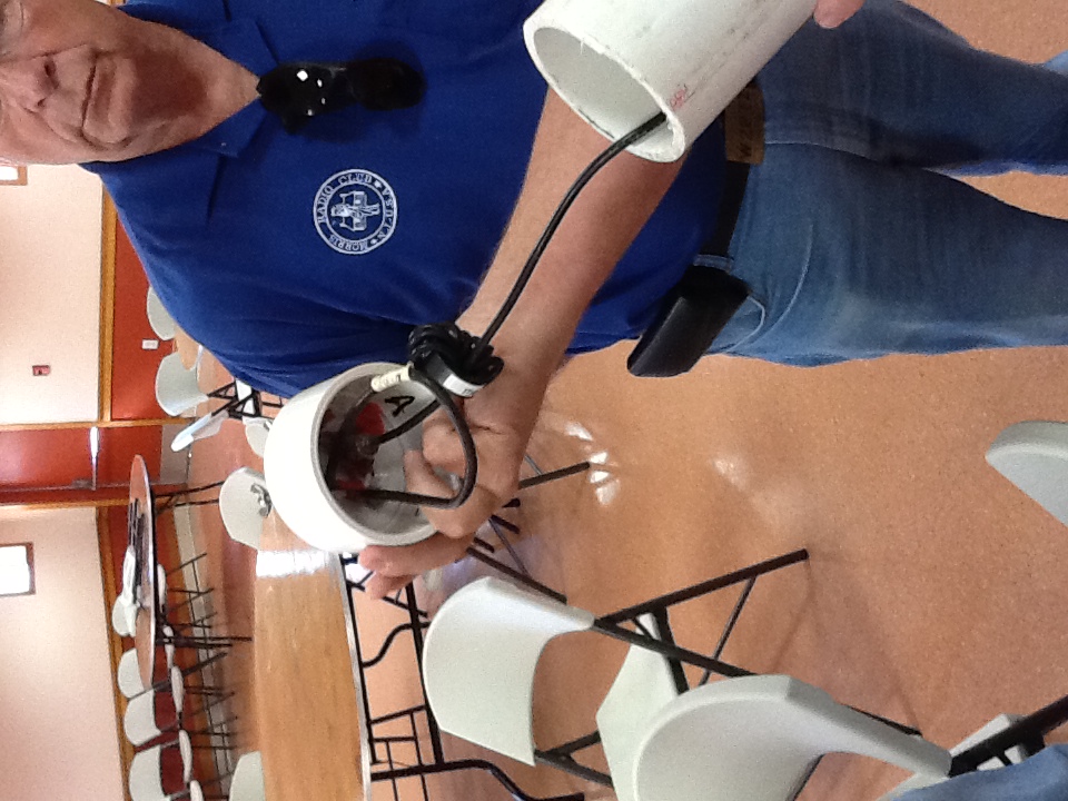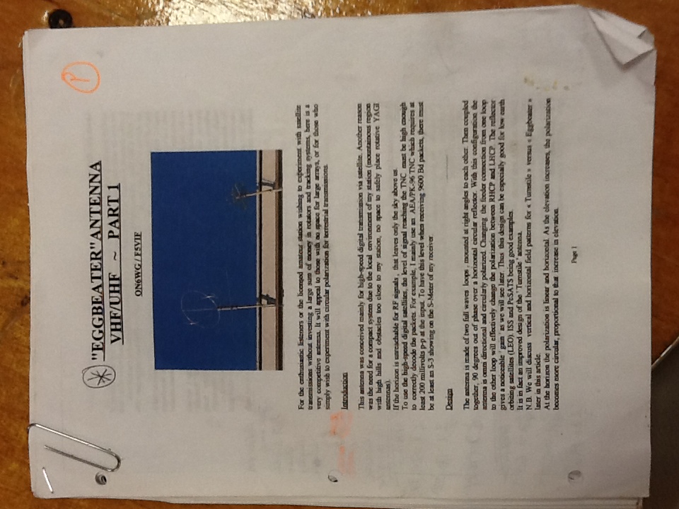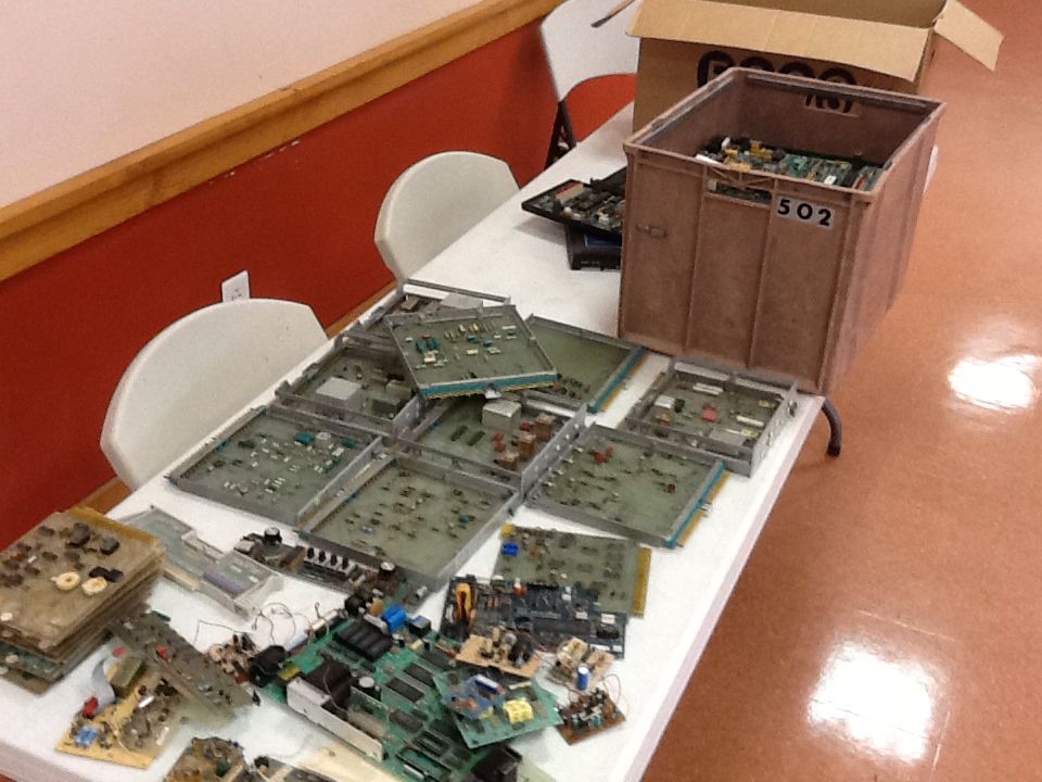 - Jim K2SZ brought along his homebrew Egg Beater antenna for VHF/UHF satellite work. Very nice construction job Jim! Jim also brought along boxes and boxes of parts (caps, resistors) and old modems for the taking. Whatta grab bag!