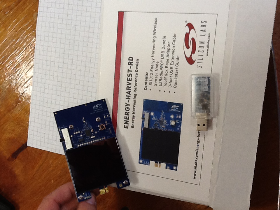 - Joe KC2VGL brought along a new find: an Energy Harvest Wireless Sensor Node. This is a reference design from the manufacturer (SiLabs) for about 50-bucks ... sure to be a useful thing in our shacks.