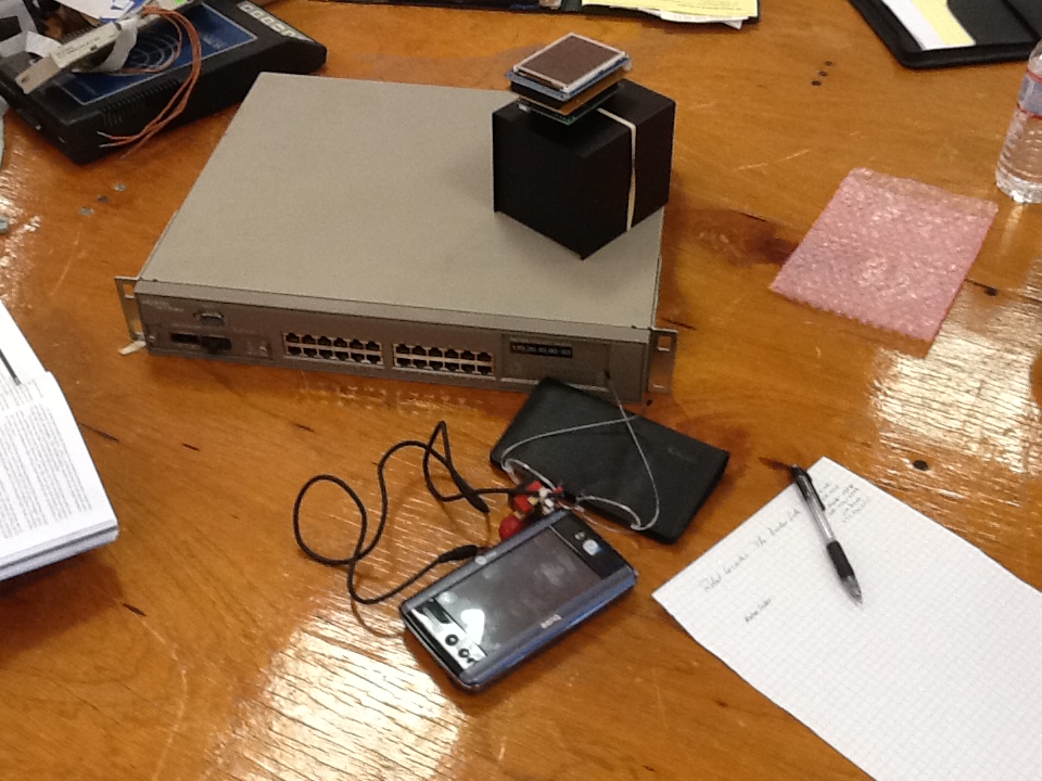 - George N2APB brought along a new handheld computer with VGA touchscreen, able to run Win XP ... for $60. The BENQ-S6 is available on eBay and we bet it'll make a fine companion for digital mode operation in the field. George also showed a nice TFT graphic display that is being designed into the GPS Cube accessory that N2CX and KC2VGL are assisting with.