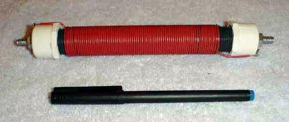 Figure 6: Photo of completed coil. (A pen is shown for size comparison.)