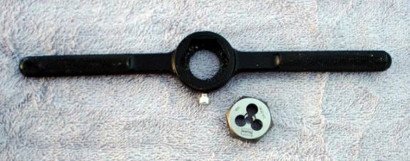 Threading tools are available at most hardware and tool stores. Assembly of the Pac12 vertical/dipole requires a 6-32 tap (for cutting inside threads) and a 1/4-20 threading die for preparation of the aluminum rod sections. You can purchase either separate tools or buy a tap and die set that contains a range of sizes. If you purchase the tools separately, you will need the tap, handle and a #36 drill. For the die, you will need to but a 1/4-20 die, and a handle.