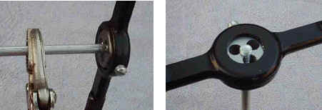 Be sure that the threading die is not tilted with respect to the rod axis as the threading starts. While threading, turn slightly backwards for every 1/4 to 1/2 turn forward to clear chips to clear debris from the die teeth. Thread each piece for 1/4-20" threads for approximately 3/8" distance from each end.