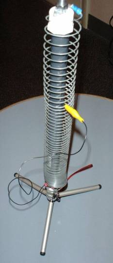 The coils are wound on the PVC risers with Radio Shack # 278-1215, solid, insulated wire with the dimensions and turns indicated in the table below. The number of turns is chosen for the low end of each band and to move the resonant point higher in frequency, simply shorten the telescoping whip. Depending on location and mounting, you may find that one or more turns may need be removed to bring the low SWR point of the antenna to the proper frequency.