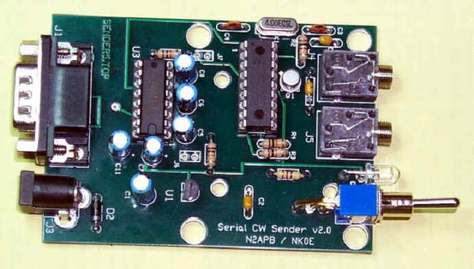 The NKØE Serial CW Sender was designed specifically for use with the GOLog ham radio contest logging software for handheld computers running the PalmOS operating system. The Serial CW Sender allows GOLog users to automate contest CW keying while contesting from the field. It was developed primarily with the QRP contester in mind. The GOLog software is available for free from http://home.earthlink.net/~golog .