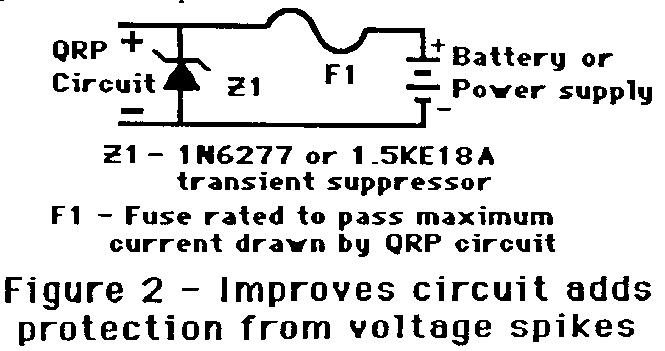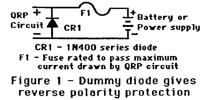 Whichever scheme you use, I think you should consider adding a protective diode and fuse to your DC-powered QRP gear. This little "quickie" can save you big trouble and a lot of bucks if you should slip up and swap positive and negative power leads. Just think of it as a prophylactic measure to help you practice safe QRPing!