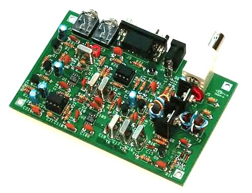 SPECIFICATIONS: - Double-sided PCB 3" x 4.5", plated-thru-holes, solder masked & silkscreened for easy assembly - Fixed 1 KHz band from 3580-3581 KHz - 3W PEP output (can get more with careful attention not to overdrive, monitoring for acceptable IMD) - interfaces with your computer's soundcard and serial interface - 20 page Technical Manual for detailed Theory of Operation, Assembly Instructions, Set-up and Usage - Special bonus section in manual: "PSK-31 & DigiPan Primer" - All on-board parts supplied in kit (as pictured here) - add a computer and an 80m antenna and you'll be on the air with PSK31 - no drift, no VFO tuning, no muss, no fuss! - design uses 2 surface mount SA612 mixers ... easy to solder down, and (most of all) available in great quantity ...no parts shortages! |